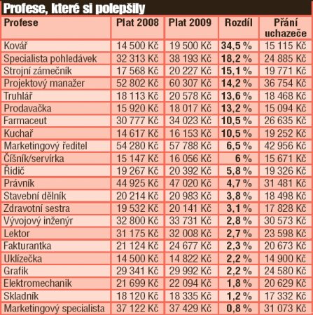 Dle přehledu z Blesku to vypadá, že v roce 2009 se dařilo řemeslníkům (což mohu potvrdit – zaplatil jsem za opravu lednice za 1 hodinu práce 1.400,-). Babička měla pravdu, když říkáva, že řemeslo má zlaté dno.