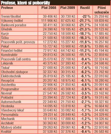 Meziroční nárůst/pokles platů v roce 2009