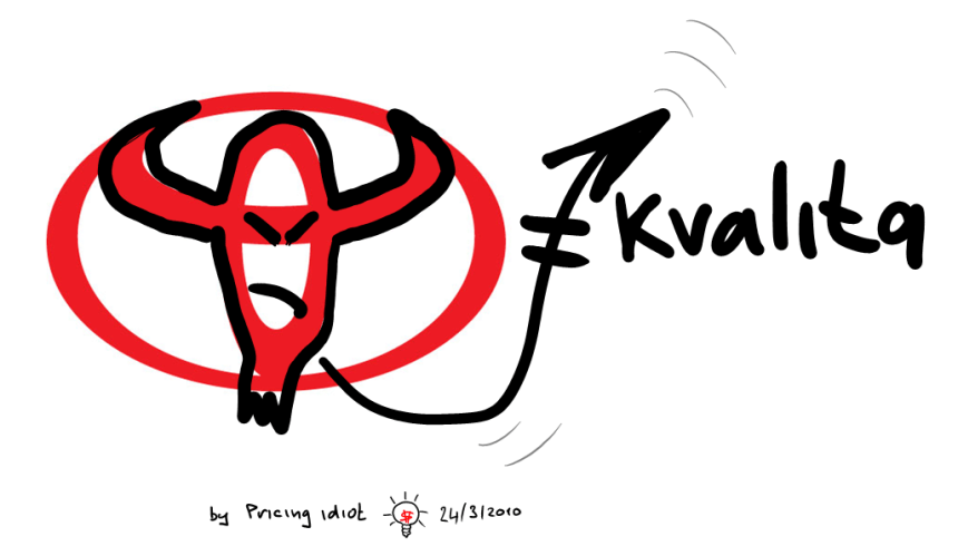 Toyota se rozhodla na základě soudních žalob, stáhnout v Severní Americe přes 8 mil. automobilů (to je zhruba dvojnásobek všech os. automobilů zaregistrovaných v ČR) vyrobených v rozmezí 2004-2010 a zkontrolovat jejich funkčnost. Hlavní problémem u těchto aut je možnost, že se plynový pedál po sešlápnutí zasekne o kobereček na podlaze a auto nekontrolovaně zrychluje a zrychluje. Dalo by se říci, že Toyota opět dala ostatním automobilkám lekci z ŘÍZENÍ KVALITY. Šlápla na plyn, bohužel pedál se nevrátil a zemřelo několik lidí… Problém má triviální řešení, ovšem jeho CENA triviální nebude.