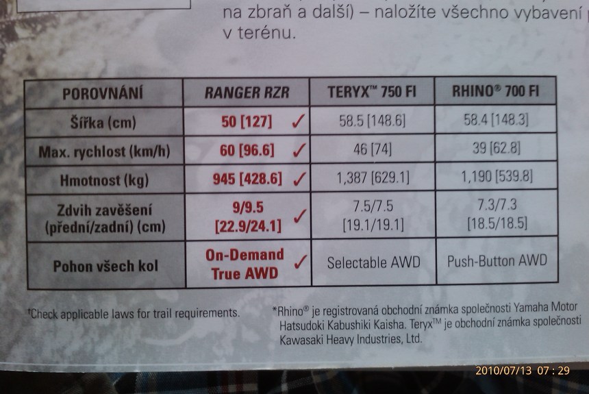 Velice pěkný příklad srovnávací reklamy ve svých propagačních materiálech používá firma Polaris, která vyrábí mimo jiné čtyřkolky a motorky.