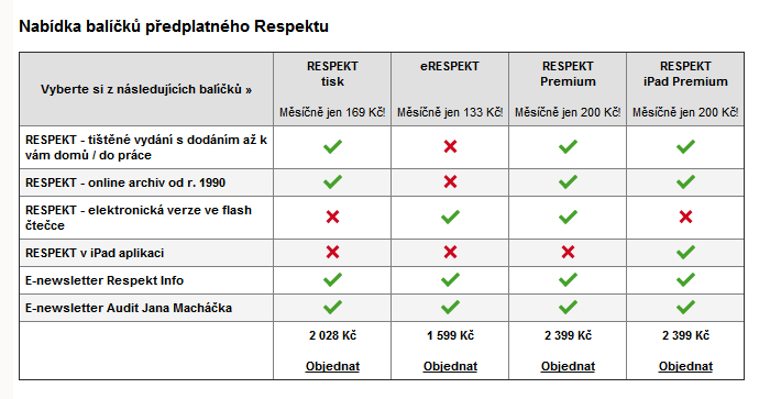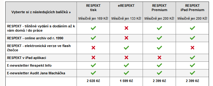 Ceník jasně ukazuje, že nemají v Respektu úplně jasno: