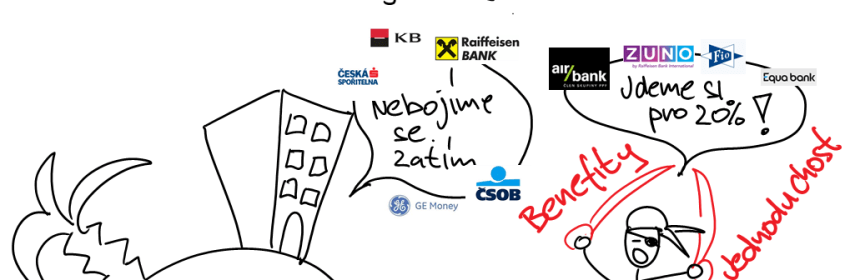 Myslim, ze nas cenova valka neceka. Velke baky si uvedomuji, ze by je to prizabilo a tak radsi ztrati nekolik procent klientu. Nicmene je to vybudi a muzeme cekat zlepsenou nabidku 🙂