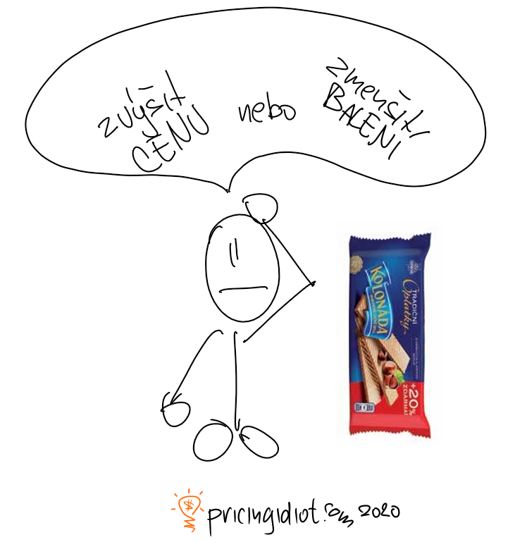 Abych vám to vysvětlil, musím začít úvahou z pohledu výrobce, který potřebuje zvýšit zisky. Má dvě rychlé možnosti – zdražit nebo změnit velikost balení. Rozhodne se pro druhou možnost, protože zákazníci jsou přibližně 4x méně citliví na zmenšení balení oproti zvýšení ceny.