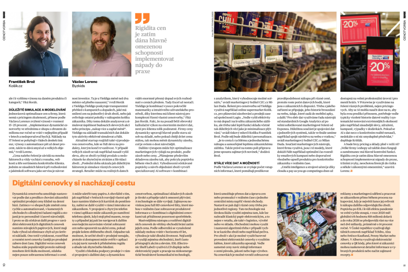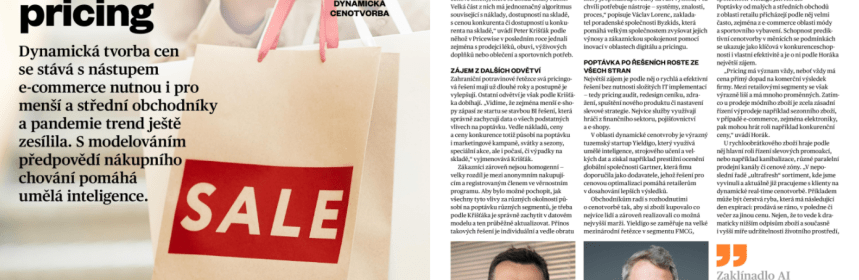 - Pokud AI = automatizace, tak ano. Základní analýzy jsou již 10 let stejné jen se mění podíl automatizace, tzn. analýzy se dělají a propisují do cen bez zásahu zaměstnance. Dále se zvyšuje počet vstupních informací, které pomáhají predikovat pravděpodobnost nákupu při různé ceně, protože roste počet datových bodů, které jsou o zákaznících k dispozici – např. z jakého zařízení se připojuje, jeho historie brouzdání na webu, údaje, které zadá do mobilní apky apod.